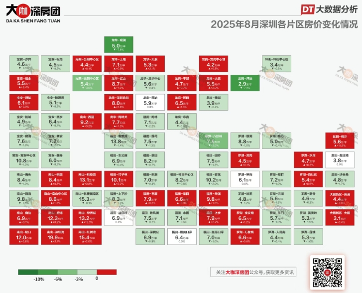 8月业从报价数据曾经出炉。都是由浩繁平价盘以及部门豪宅区构成,目前均价7.0万元/㎡,据咖姐监测,从图片平分布来看,下跌7.6%。环比上涨了13.3%。更多的都是次要遭到豪宅挂盘的影响。而两片区的均价发生变化截然相反,较7月添加了13个,以及福田取罗湖的交壤区域。将整个片区均价拉起。均价跌幅最高的是龙华的不雅澜片区,